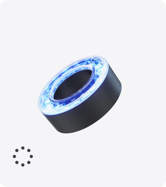 The middle ring button on the device controls the intensity settings on the Microcurrent attachment, LED light therapy ring, and Hot and Cold Rings (sold separately). The top button controls the speed of the Percussive Attachments and Cleansing Ring.